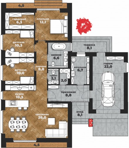 • Общая площадь 132 м2